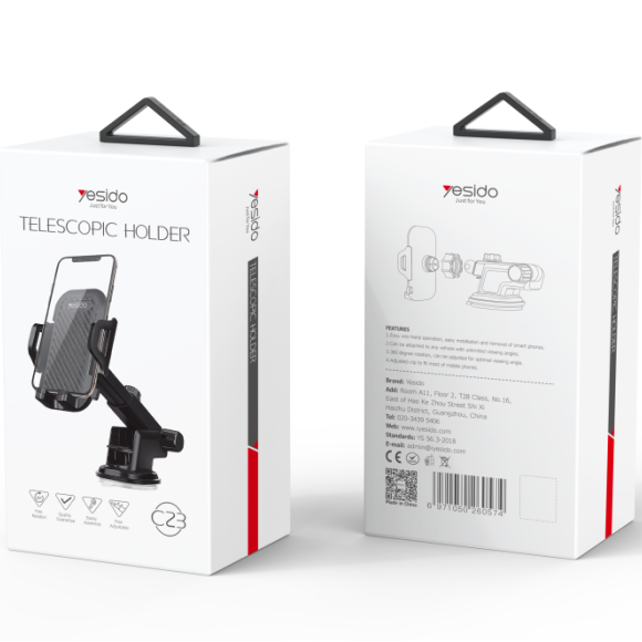 يتميز حامل Yesido C23 بآلية مشبك تلقائية تسمح بتركيب الهاتف بسهولة بضغطة زر واحدة.