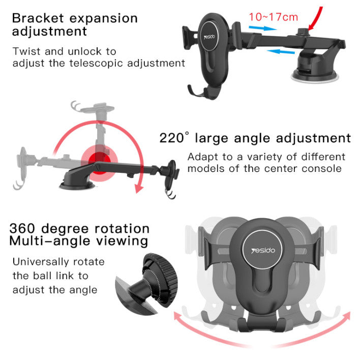 Designed with a strong suction base for firm placement on both the dashboard and windshield.