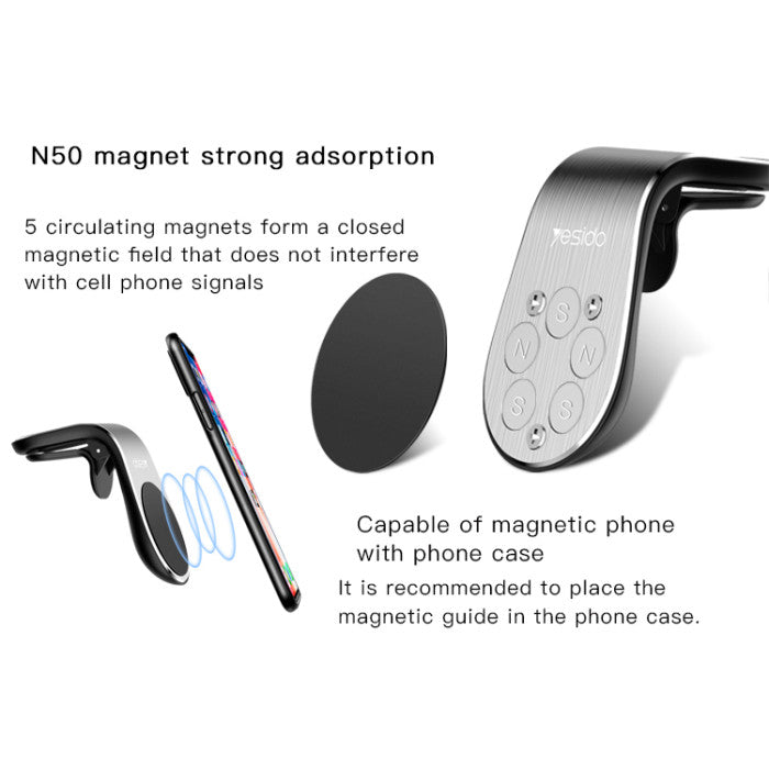 Experience powerful magnetic stability with the Yesido C64 Air Vent Magnetic Phone Holder.