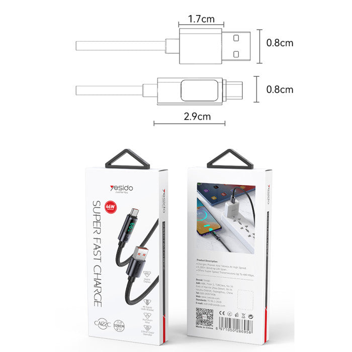 يأتي مع واجهة Type-C إلى Type-C لتوافق تام مع الأجهزة الحديثة.