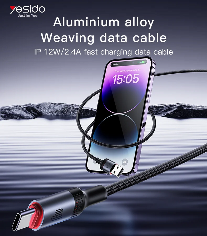 استمتع بشحن موثوق ونقل بيانات ثابت مع كابل الشحن بطول 2 متر والمصنوع من سبائك الألومنيوم المتينة وخامة TPE صديقة للبيئة.