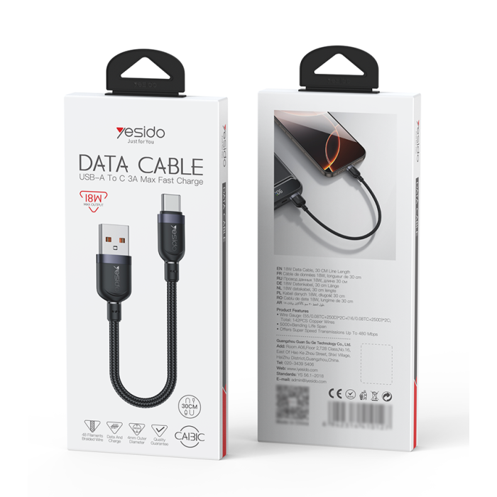 يدعم الكابل شحن سريع حتى 18 واط مع نقل بيانات سلس ومستقر للهواتف والأجهزة اللوحية واللابتوبات.