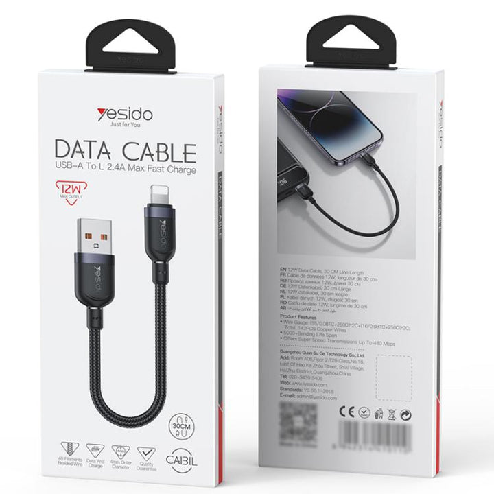 ⚡ 0.3M USB to Lightning 12W Fast Charging Braided Cable