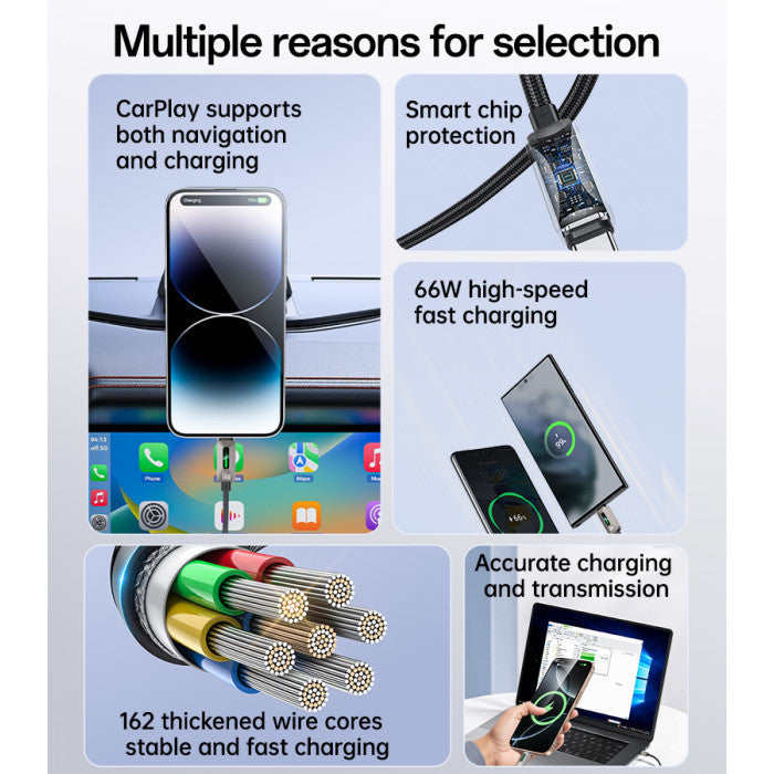 Charge your devices efficiently with this 66W USB to Type-C Fast Charging Cable.