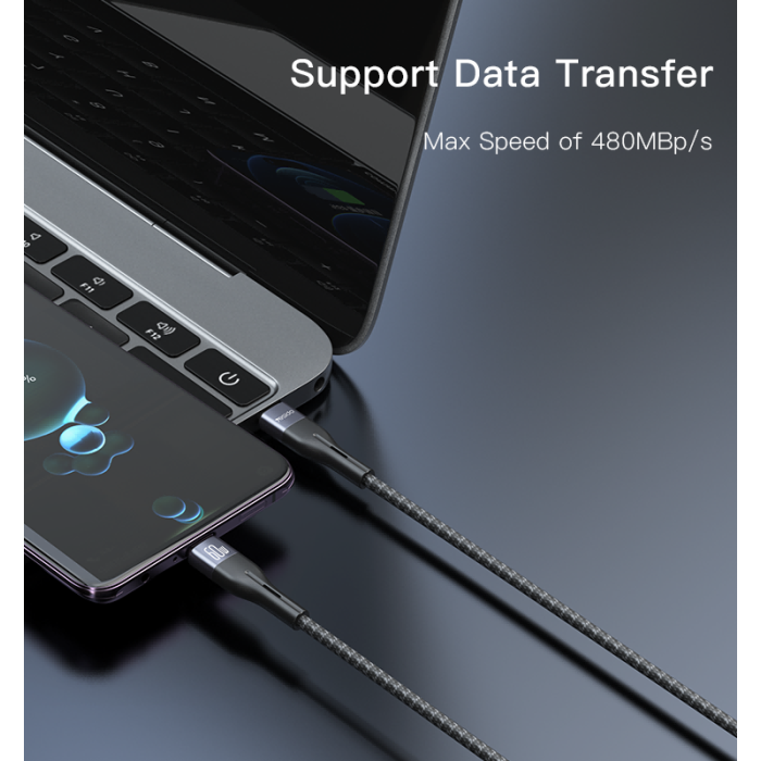 يقدم الكابل قدرة تصل إلى 60W ويدعم جميع بروتوكولات الشحن السريع مثل QC, PD, PPS, SCP, SVP, VOOC، مما يجعله متوافقًا مع الهواتف الذكية والأجهزة اللوحية واللابتوبات وجميع أجهزة Type-C.