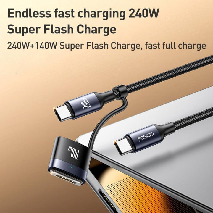 Supports Type-C to MagSafe 3 output up to 140W and Type-C to Type-C output up to 240W.