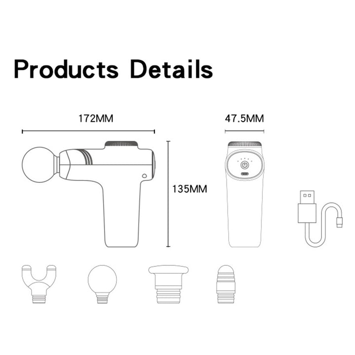 The MG01 includes four interchangeable massage heads to target specific muscle groups — shoulders, legs, neck, arms, and lower back. With Type-C fast charging, you can easily recharge it anywhere with convenience and reliability.