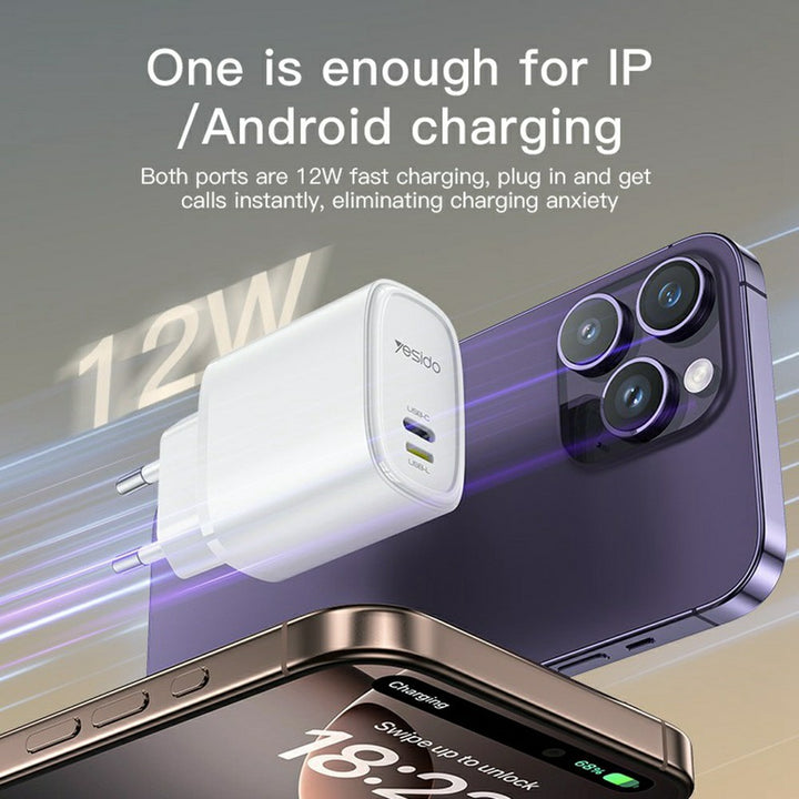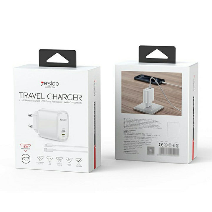 The Yesido YC71 Dual Port Travel Charger is designed for fast and reliable charging on the go.