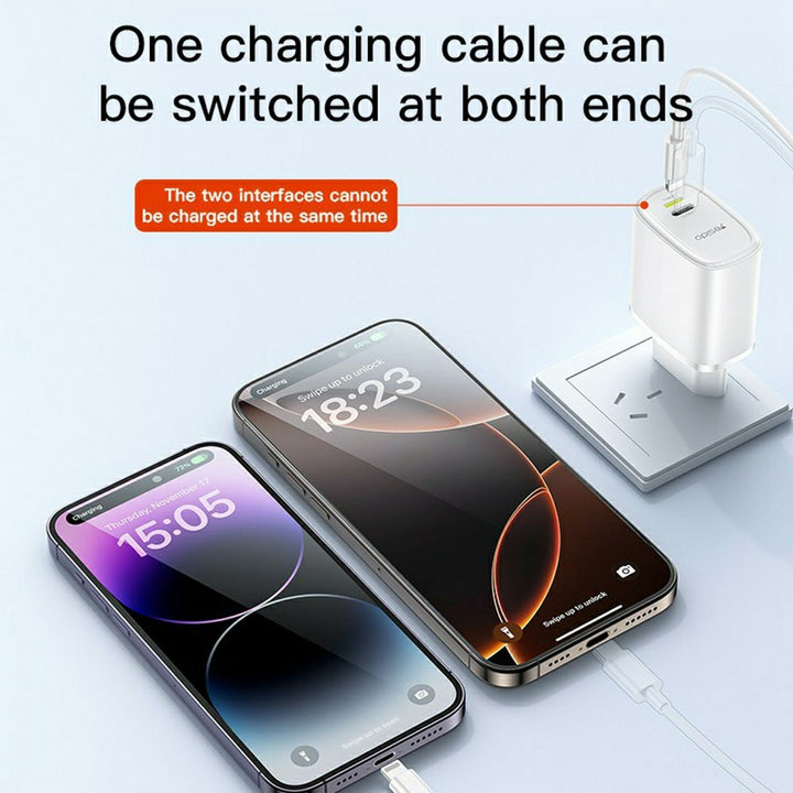 - 🔌 Dual Port Design (USB + Type-C) – Charge two devices simultaneously with full speed.