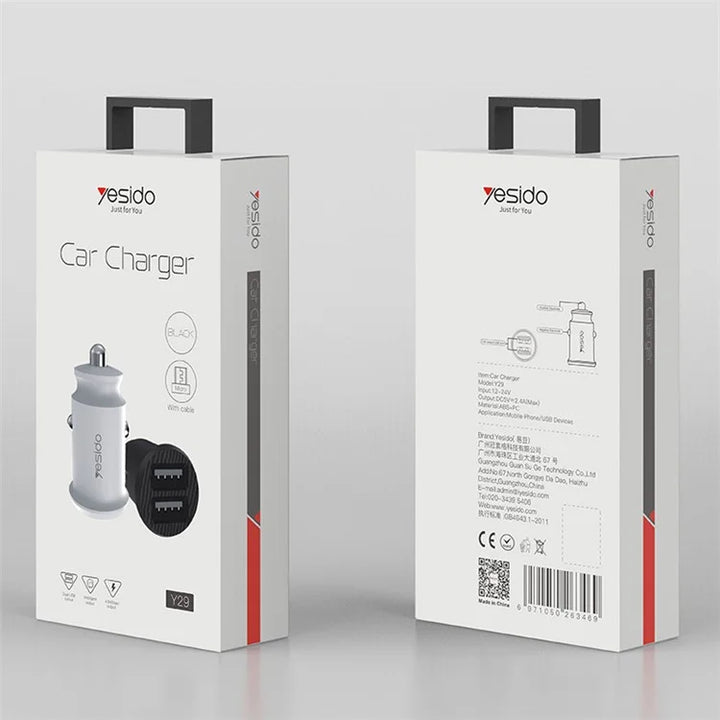Experience reliable and efficient charging on the go with the Yesido Y29 Dual USB Car Charger. Designed for convenience and safety, this compact charger allows you to power up two devices simultaneously with a maximum output of 2.4A. Its sleek, minimal design fits easily into any car’s cigarette lighter port without taking up extra space.