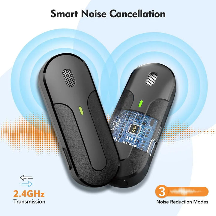 Powered by 2.4GHz plug-and-play technology with automatic pairing, it delivers stable, low-latency transmission with zero setup hassle. Built-in AI noise reduction and ceramic antenna technology ensure crisp voice quality even in outdoor or noisy environments.