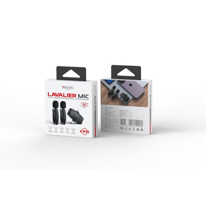 The Yesido KR15 is a compact and portable dual wireless microphone system engineered with high-sensitivity MEMS microphone technology for clear and professional-quality voice pickup.
