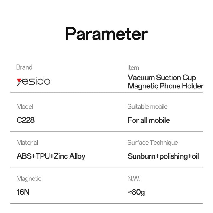 Experience superior stability and convenience with the Yesido C228 Magnetic Car Phone Holder — the perfect blend of power, flexibility, and modern design. Built from premium ABS, PC, and zinc alloy, it features a 16N magnetic grip that keeps your phone secure even on the roughest roads.