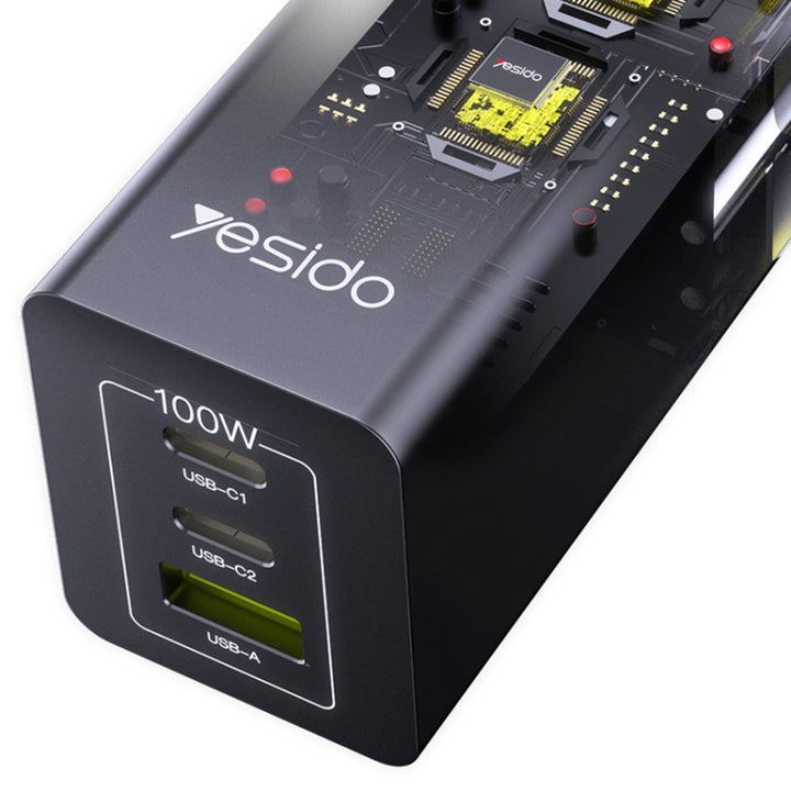 شاحن المكتب Yesido YC58 GaN 100W بيقدّم أداء شحن استثنائي بفضل تقنية GaN (Gallium Nitride) المتقدمة،