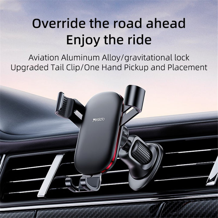 Experience effortless phone mounting with the Yesido C243 Gravity Air Vent Phone Holder, engineered for strength, precision, and convenience. Crafted from aviation-grade aluminum alloy and durable ABS plastic, this mount combines elegance with long-lasting durability.