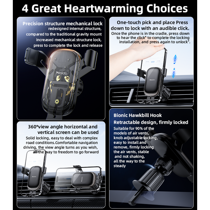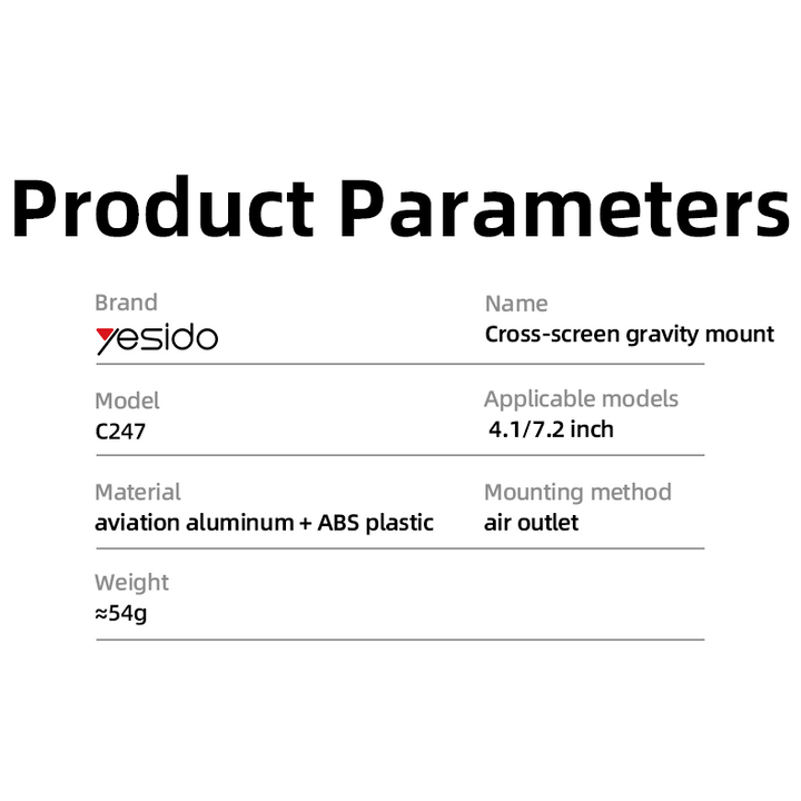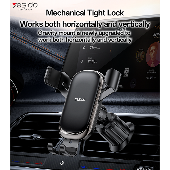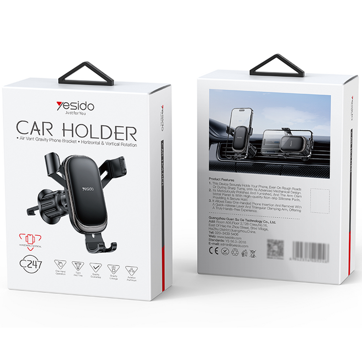 The Yesido C247 Gravity Sensor Air Vent Phone Holder delivers reliable, secure mounting for your smartphone while driving. Built from ABS, PC, and aluminum alloy, it combines long-lasting durability with a sleek, elegant finish.