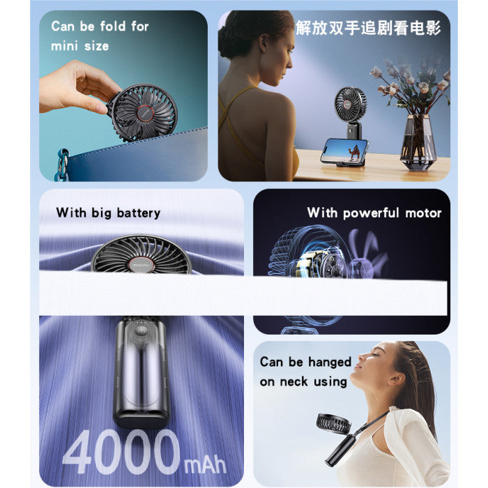 خليك منتعش ومشحون في نفس الوقت مع Yesido YF10، المروحة المحمولة المصممة للاستخدام اليومي، السفر، الشغل أو الأنشطة الخارجية. مزودة ببطارية كبيرة السعة 4000mAh، وبتشتغل كـ مروحة تبريد + باور بانك بقوة 10W — عشان تديك هواء منعش وشحن طارئ في أي وقت.