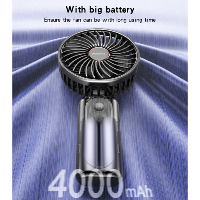 Stay cool and powered up anywhere with the Yesido YF10 Handheld Mini Fan, designed for outdoor use, travel, work, and everyday activities. Equipped with a 4000mAh high-capacity battery, this smart device functions as both a portable fan and a 10W mini power bank — giving you cooling comfort and emergency charging on the go.