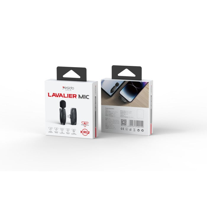 The Yesido KR12 is a compact and professional wireless MEMS microphone designed for clear voice recording using an IP plug-and-play receiver compatible with supported mobile devices. With 360° omnidirectional pickup, 2.4GHz stable wireless transmission, and low-latency audio, it provides clean and consistent sound for livestreaming, interviews, vlogging, online teaching, and content creation.