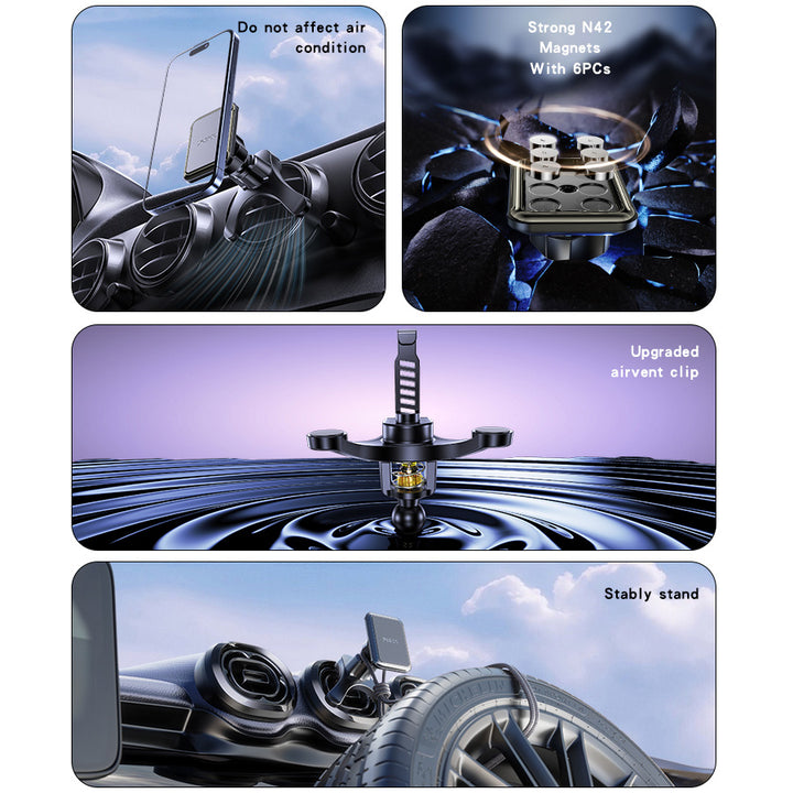 - 🚗 Vent-Friendly Design: Compact mount preserves dashboard space and visibility.
