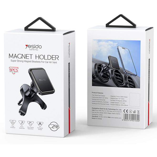 The Yesido C247 Gravity Sensor Air Vent Phone Holder delivers reliable, secure mounting for your smartphone while driving. Built from ABS, PC, and aluminum alloy, it combines long-lasting durability with a sleek, elegant finish.